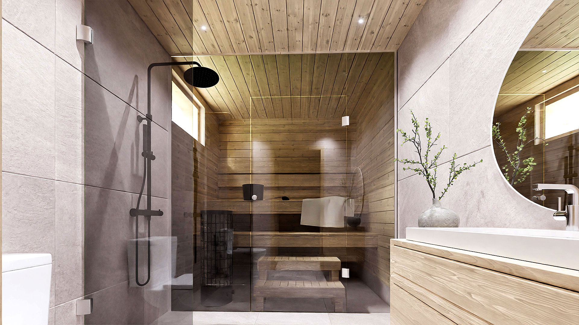 Toimivat tilat: Erillinen WC, kodinhoitohuone, kylpyhuone ja sauna jokaisessa kodissa.