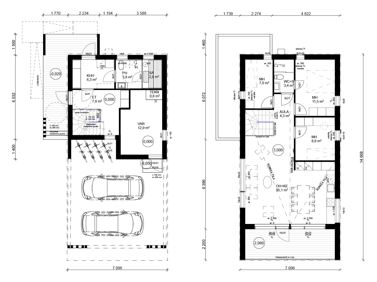110/115m² + lämmin varasto 14 m²